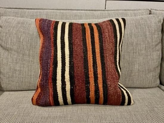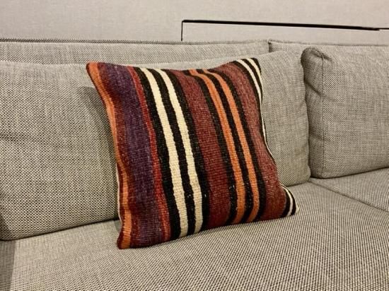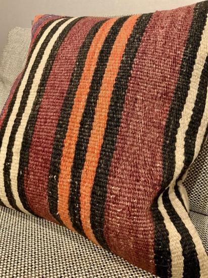 何十年も前に織られたオールドキリムの状態の良い部分をカットしてキリムのクッションカバーにしました。何回も洗い、日に当ててこそ出てくる色合い風合いに趣きを感じます。ソファーにいくつか並べてお洒落にディスプレイしてみてはいかがでしょう。
