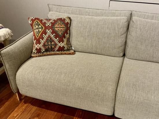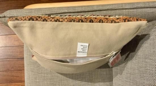 初めてキリムを手にされる方には、チクチクするという感触があるかもしれません。感じ方には個人差がありますが、それがキリムの風合いという事をご理解下さいませ。チクチク感が気になるという方には、使い方としまして頭や顔をつけるときには滑らかな肌触りの裏地(コットン)面を、インテリアとして楽しまれる時にはキリム面を出してご使用されることをご提案いたします。