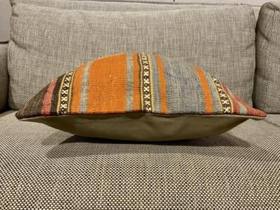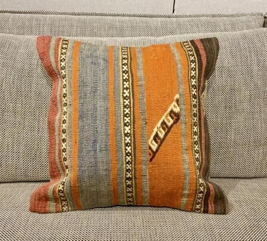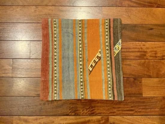何十年も前に織られたオールドキリムの状態の良い部分をカットしてキリムのクッションカバーにしました。何回も洗い、日に当ててこそ出てくる色合い風合いに趣きを感じます。ソファーにいくつか並べてお洒落にディスプレイしてみてはいかがでしょう。
