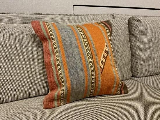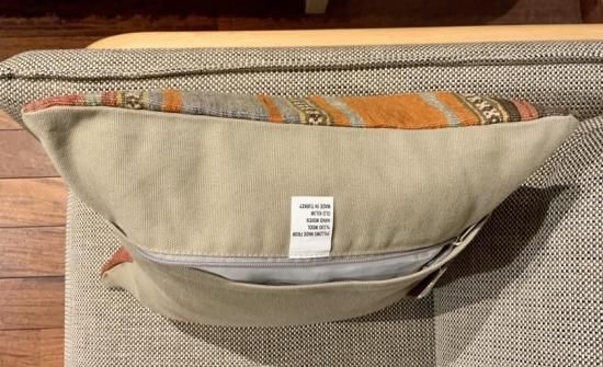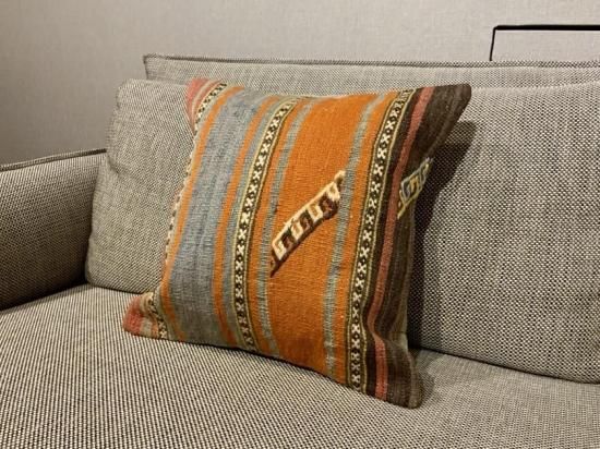 初めてキリムを手にされる方には、チクチクするという感触があるかもしれません。感じ方には個人差がありますが、それがキリムの風合いという事をご理解下さいませ。チクチク感が気になるという方には、使い方としまして頭や顔をつけるときには滑らかな肌触りの裏地(コットン)面を、インテリアとして楽しまれる時にはキリム面を出してご使用されることをご提案いたします。