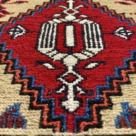 文様には幾何学模様、生命の樹、鳥や動物など象徴的なモチーフが多く、地域ごとの文化や信仰が反映されています。堅牢で摩耗に強いため袋物、敷物、サドルバッグなど生活道具に用いられてきました。近年では美術性の高さから工芸品としても評価が高まり、伝統技術を守る織り手たちによって継承されています。
