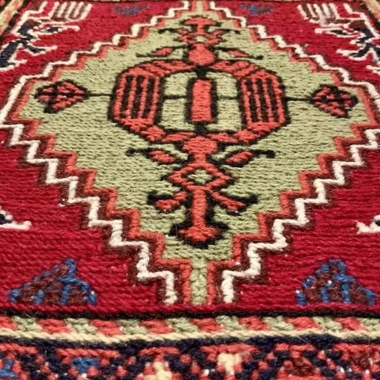 文様には幾何学模様、生命の樹、鳥や動物など象徴的なモチーフが多く、地域ごとの文化や信仰が反映されています。堅牢で摩耗に強いため袋物、敷物、サドルバッグなど生活道具に用いられてきました。近年では美術性の高さから工芸品としても評価が高まり、伝統技術を守る織り手たちによって継承されています。